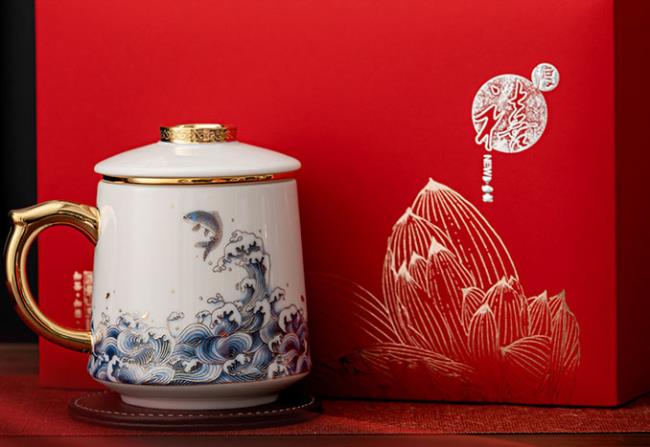 【品名】玉白瓷静香办公杯(锦绣中华)