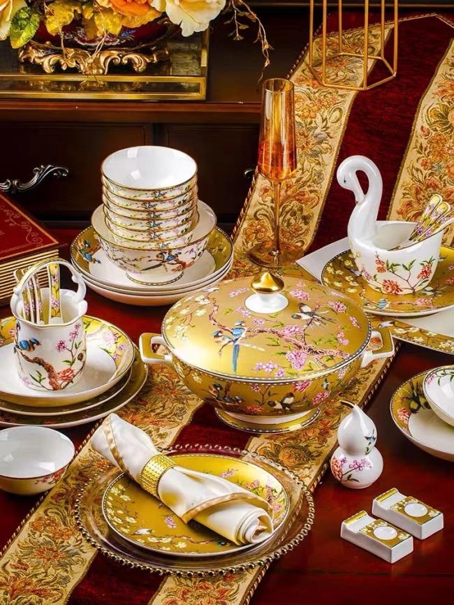 【简述】家用中式宫廷碗金边高档骨瓷餐具