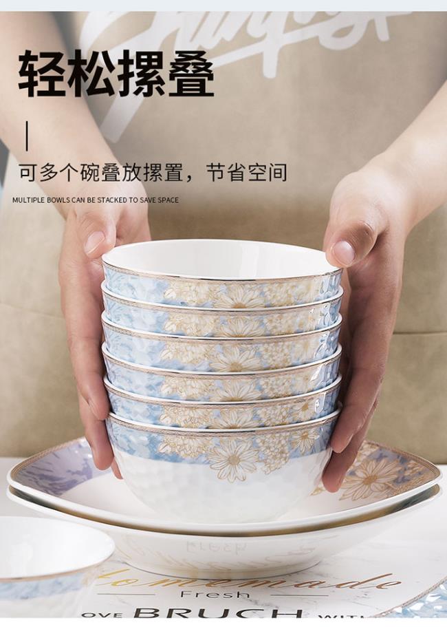 【简述】家用骨瓷简约浮雕碗盘组合餐具套装