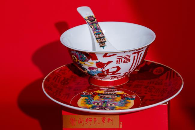 花面采用夸张龙脸图腾彰显“龙颜大富”之意,龙颜图腾头顶彰显代表玉林历史文化的万花楼。