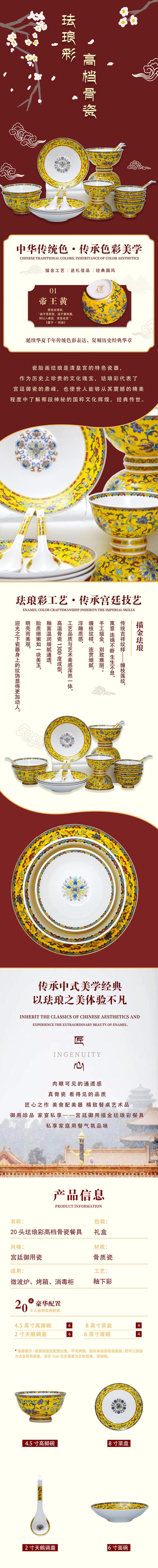珐琅彩高档骨瓷20头餐具(帝王黄)